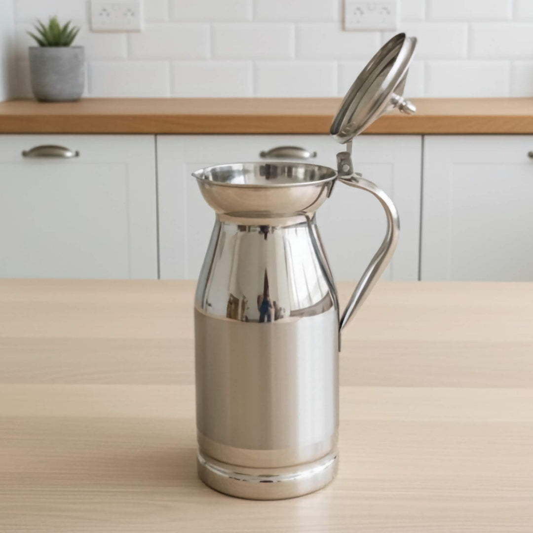 The Flora Jug brings timeless elegance to your kitchen with its distinctive design that stands apart from ordinary serveware. Crafted from premium-grade stainless steel and finished with a mirror polish, this one-of-a-kind piece catches the light beautifully while maintaining its sophisticated aesthetic. Perfect for serving water, beverages, or as a striking centerpiece, it instantly elevates your table setting with an air of refinement and luxury that guests will surely admire.