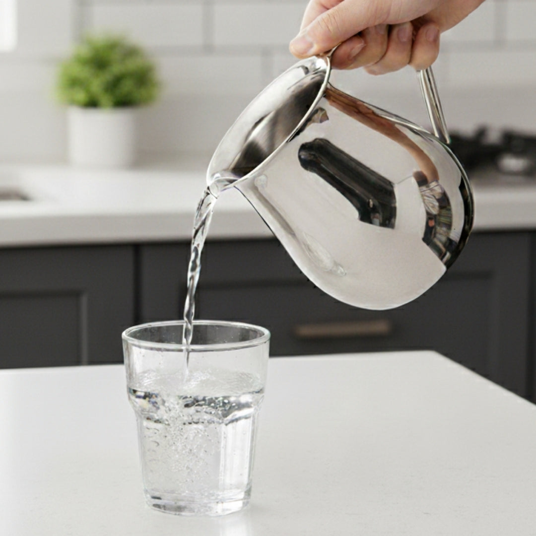 Transform your daily hydration routine with this stunning Lemon Water Jug, engineered from premium high-grade stainless steel. The elegantly curved design isn't just beautiful—it's brilliantly functional, delivering smooth, splash-free pouring with every use. Its mirror-polished surface gleams with sophistication, making it a conversation piece on any table. Invest in a jug that marries form and function, bringing both style and reliability to your kitchen and dining experience.